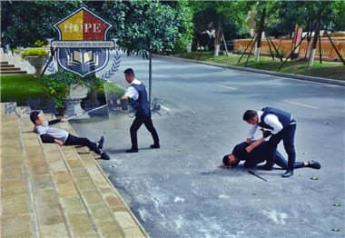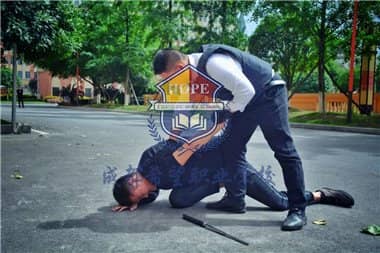 与此同时学校安保人员迅速集结,纷纷拿起防暴武器与歹徒周旋、搏斗,最后将歹徒控制住,等待警察到来,避免了伤害事故的发生,保护了全校师生的生命安全。
